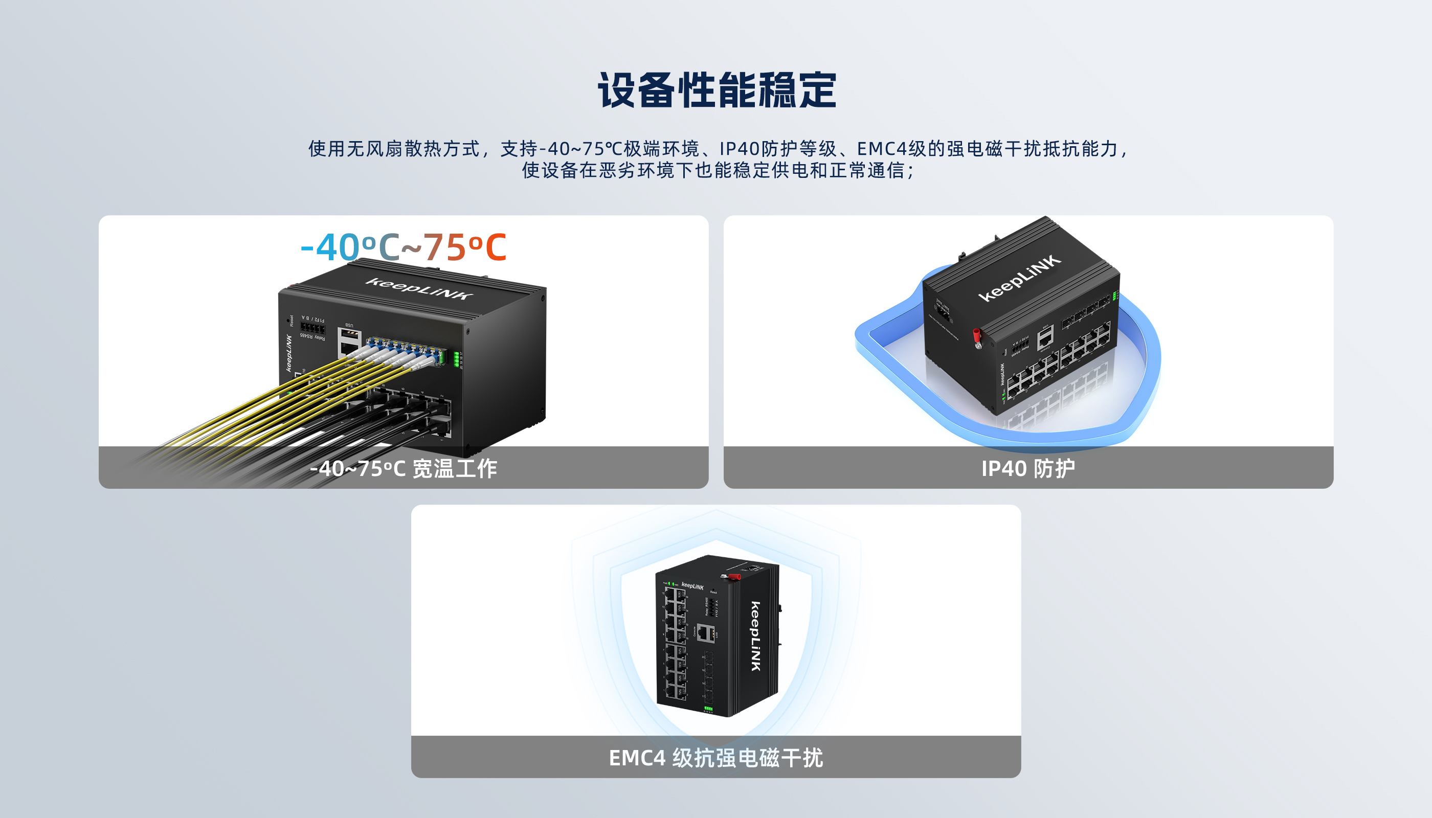 l-40℃~+75℃工作温度,IP40防护等级、宽温与高防护应对恶劣环境