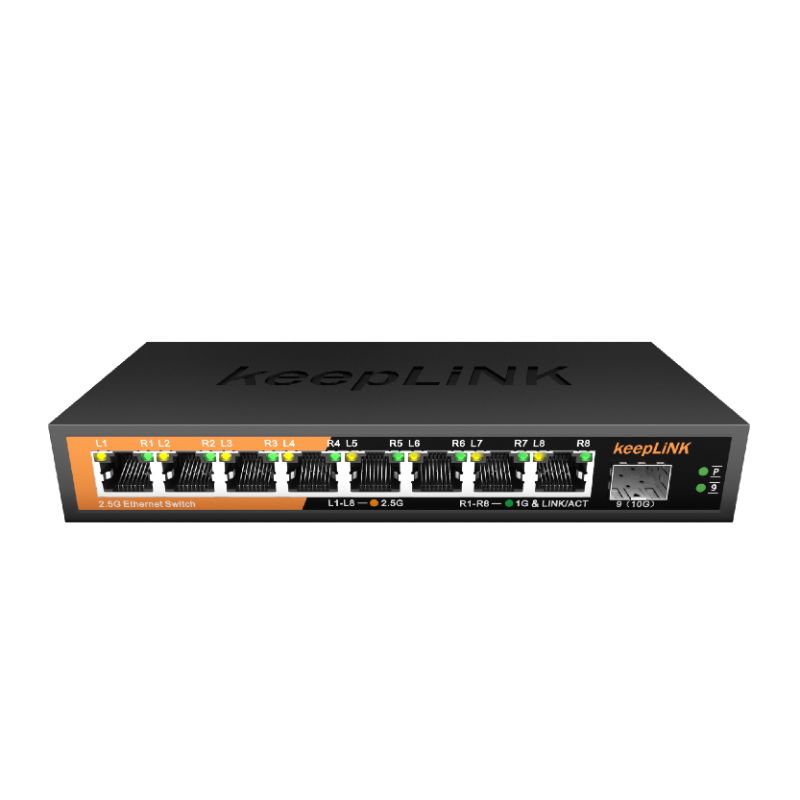 KP-9000-9XH-X系列非管理型交换机 ,具有8个10/100/1000/2500Mbps自适应RJ45 端口和1个万兆光口。每个 RJ45 端口均支持自动翻转和线速转发功能。采用存储 转发方式 ,提供稳定可靠的数据传输。