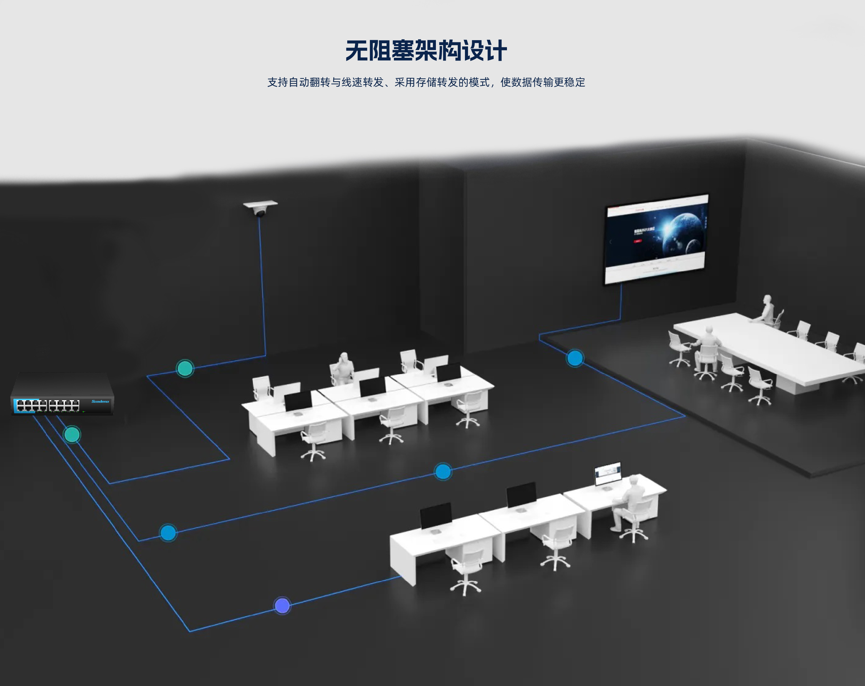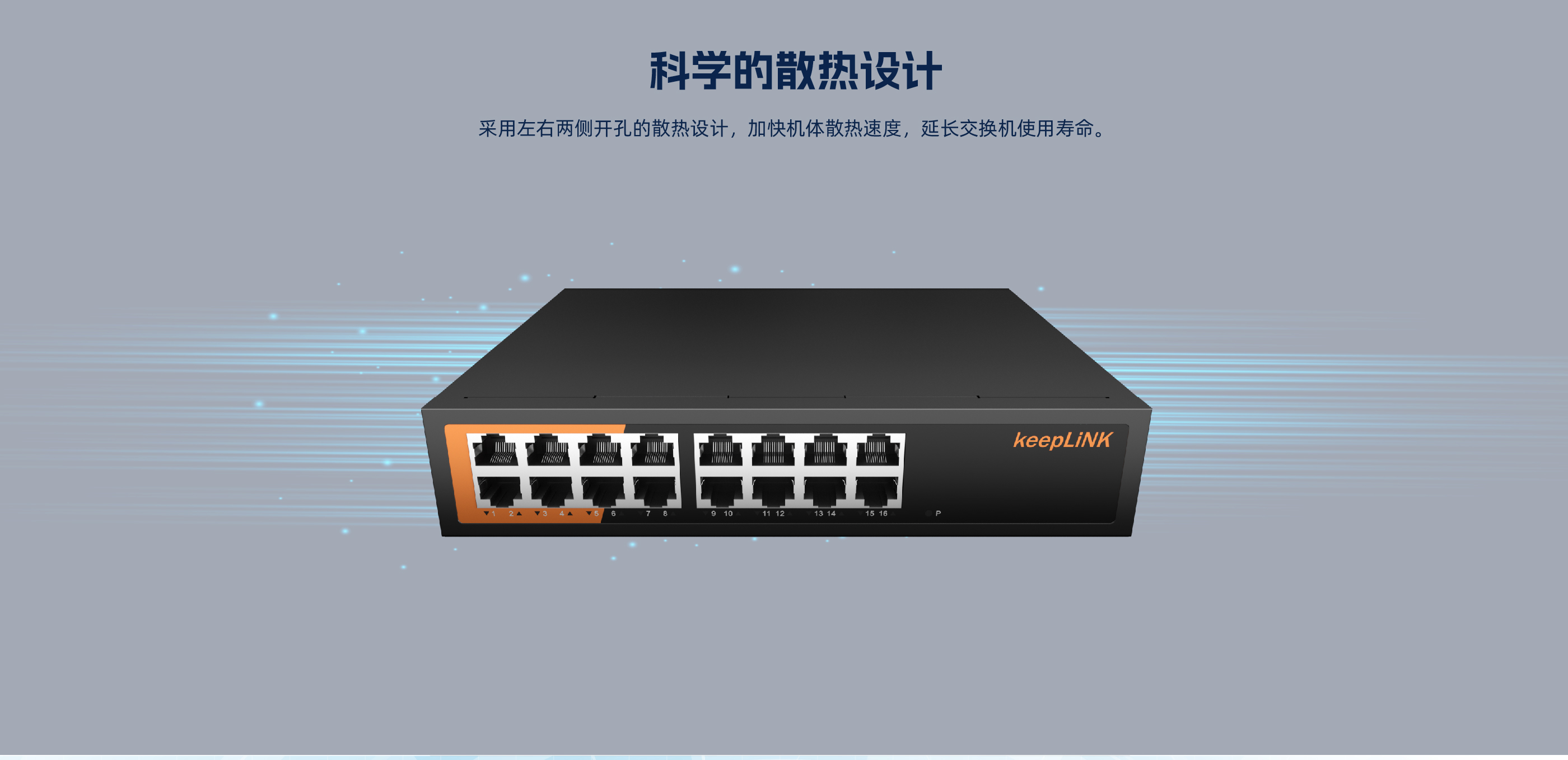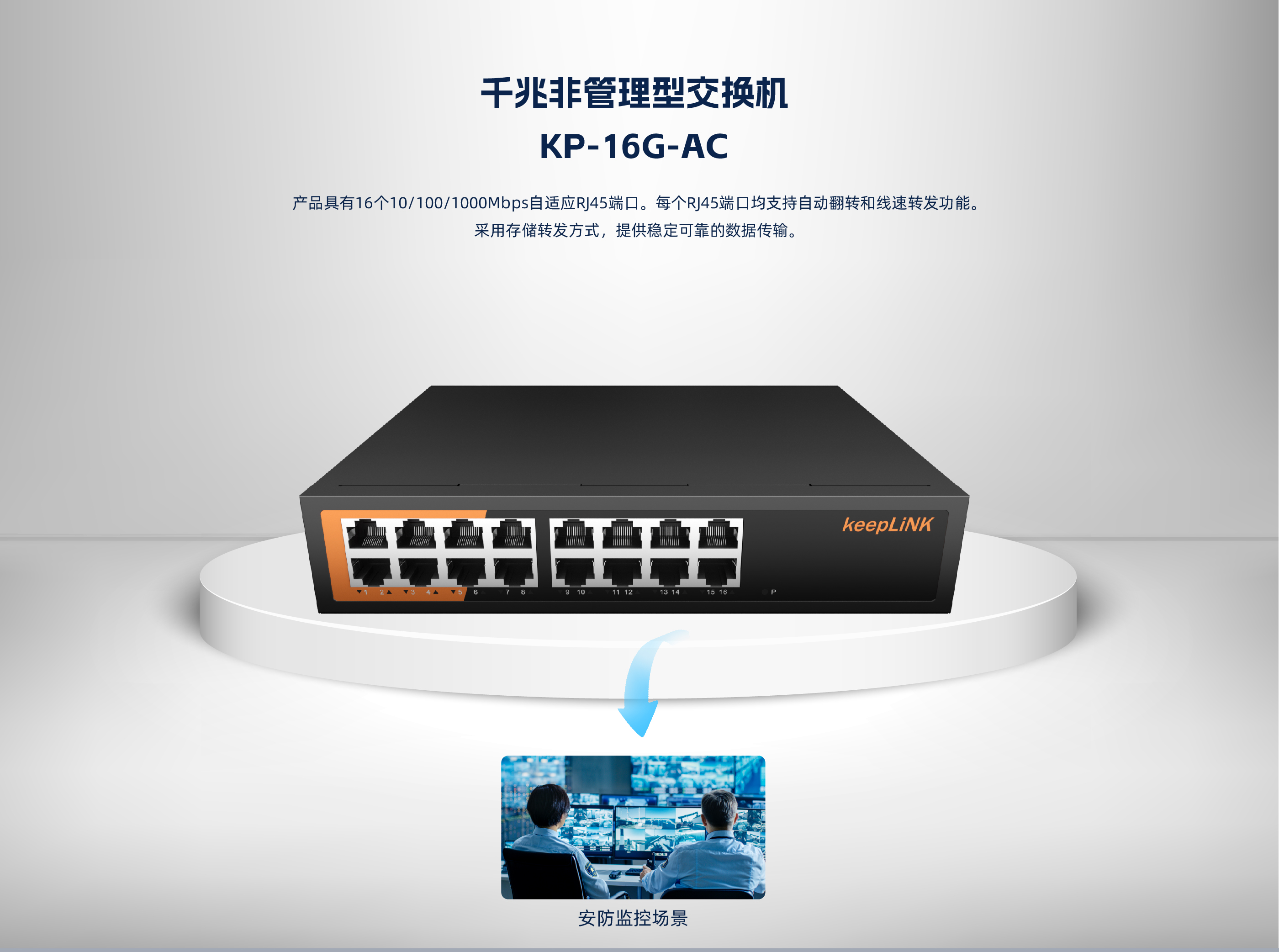 KP-16G-AC系列非管理型交换机 ,具有16个10/100/1000Mbps自适应 RJ45 端口。每个 RJ45 端口均支持自动翻转和线速转发功能。采用存储转发方式 ,提供稳定可靠的数据传输。