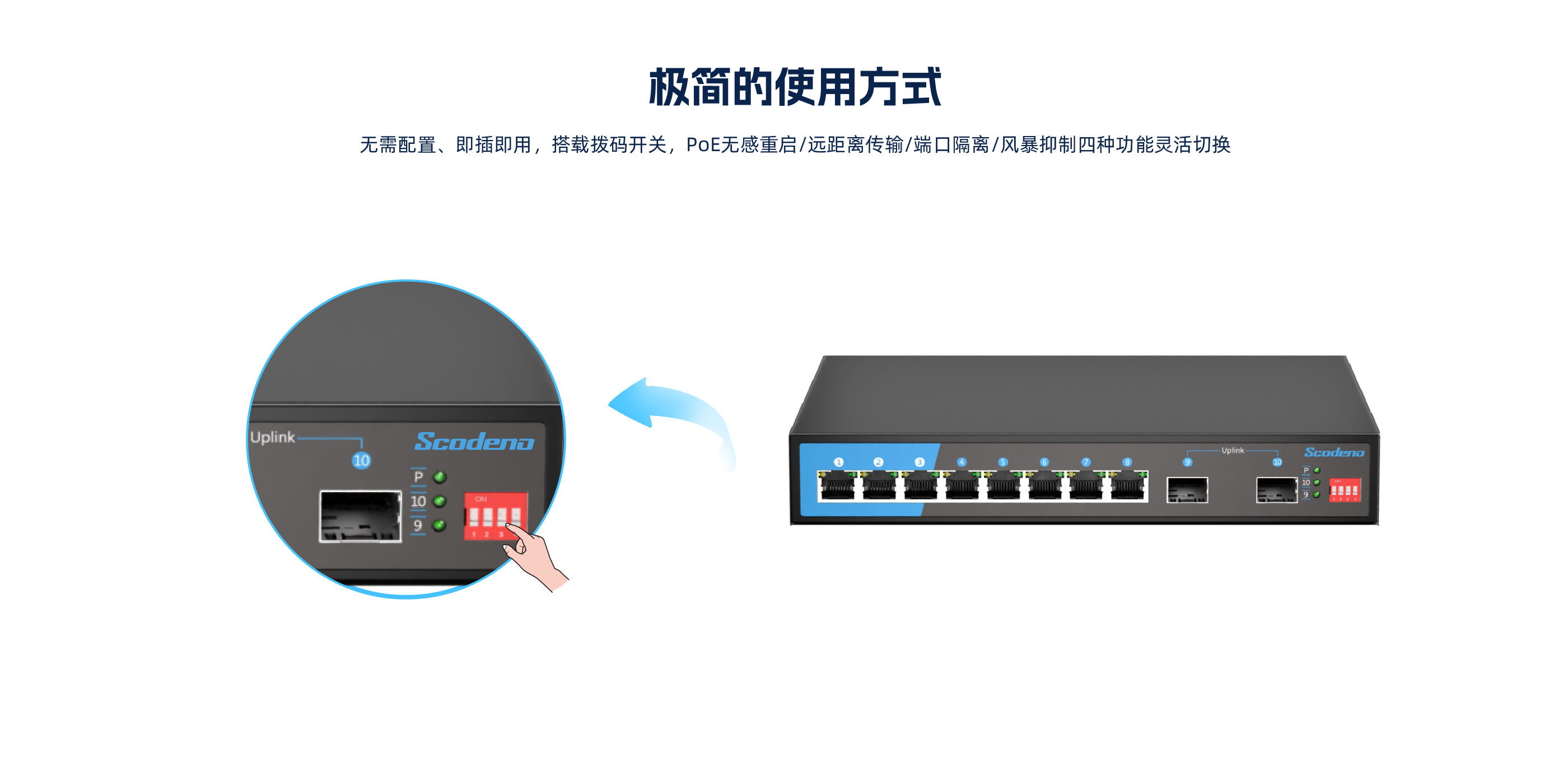 KP-10G-S2-AC系列非管理型交换机 ,具有8个10/100/1000Mbps自适应RJ45 端口和2个千兆光口。每个 RJ45 端口均支持自动翻转和线速转发功能。采用存储 转发方式 ,提供稳定可靠的数据传输。
