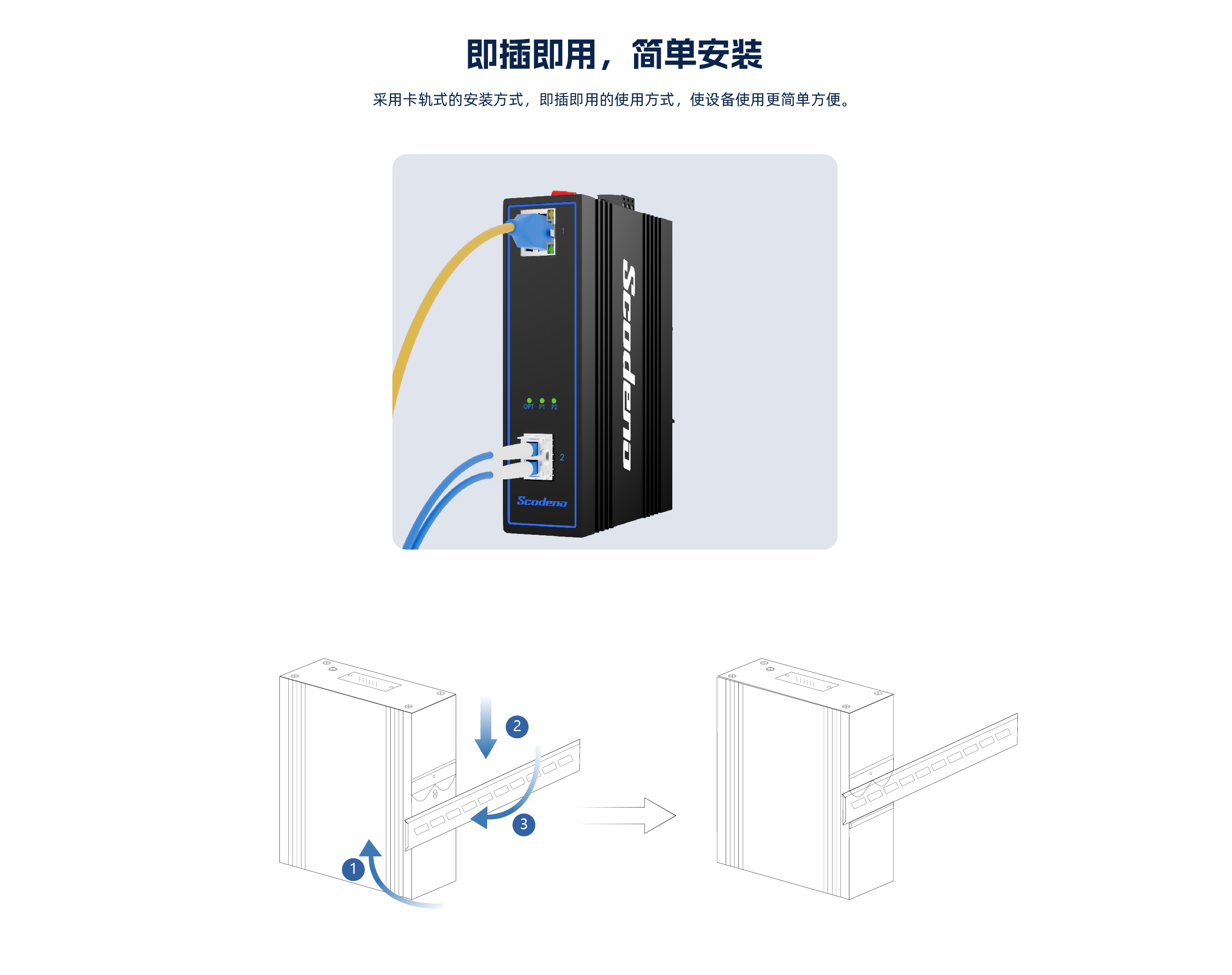 此设备是1个100M光口&1个10/100M自适应网口工业以太网快速交换机,POE 可选 ,通过无风扇散热电路设计、宽范围工作环境温度、高防护等级等技术 ,提供了 耐高/低温、防雷等卓越的工业级品质 ,增强了工业网络的可靠性和安全性。更能满足 轨道交通、平安城市、智能交通、室外监控和其他恶劣环境中的部署要求