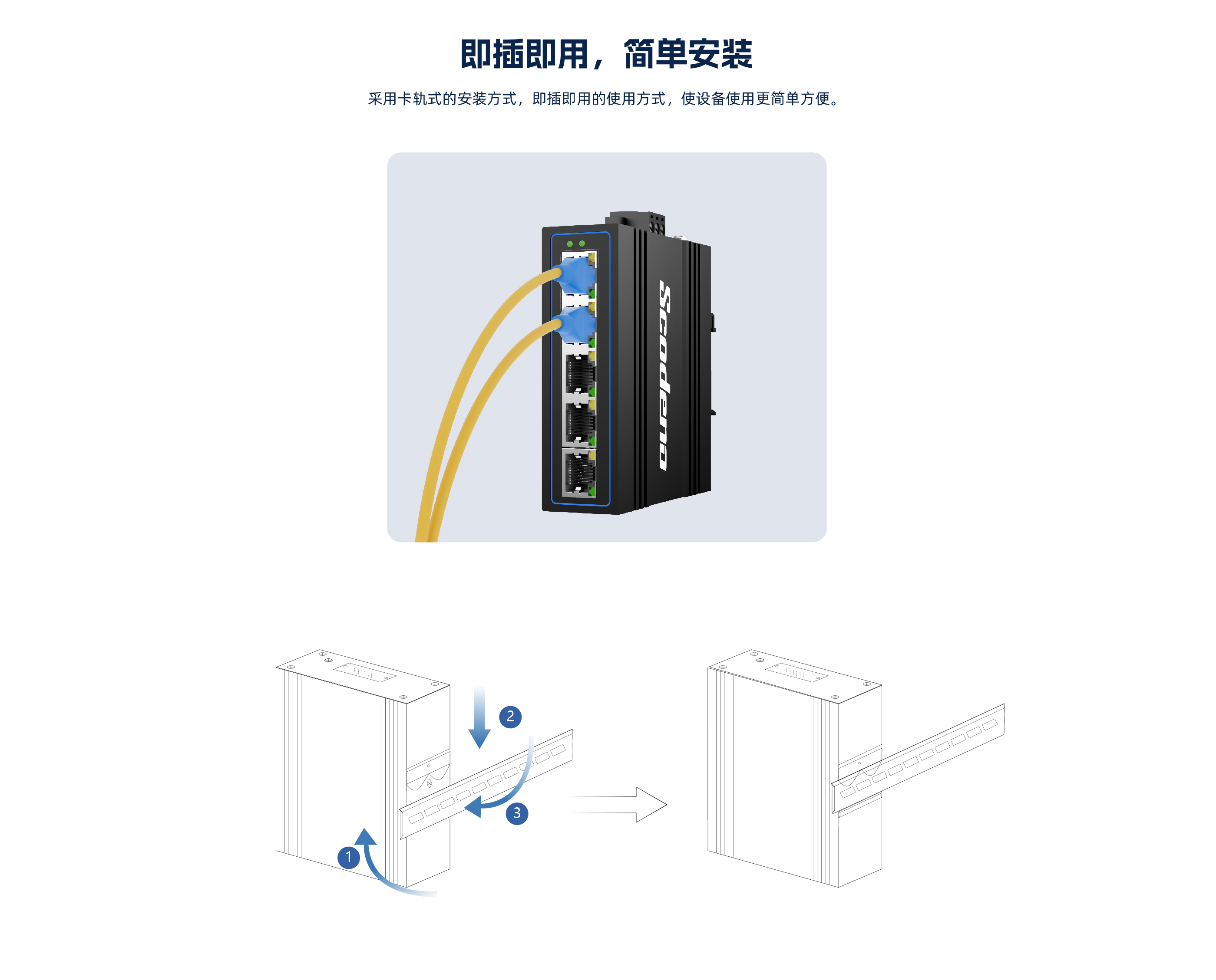 此设备是5个10/100M自适应网口工业以太网快速交换机 ,通过无风扇散热电路 设计、宽范围工作环境温度、高防护等级等技术 ,提供了耐高/低温、防雷等卓越的工 业级品质 ,增强了工业网络的可靠性和安全性。更能满足轨道交通、平安城市、智能 交通、室外监控和其他恶劣环境中的部署要求。