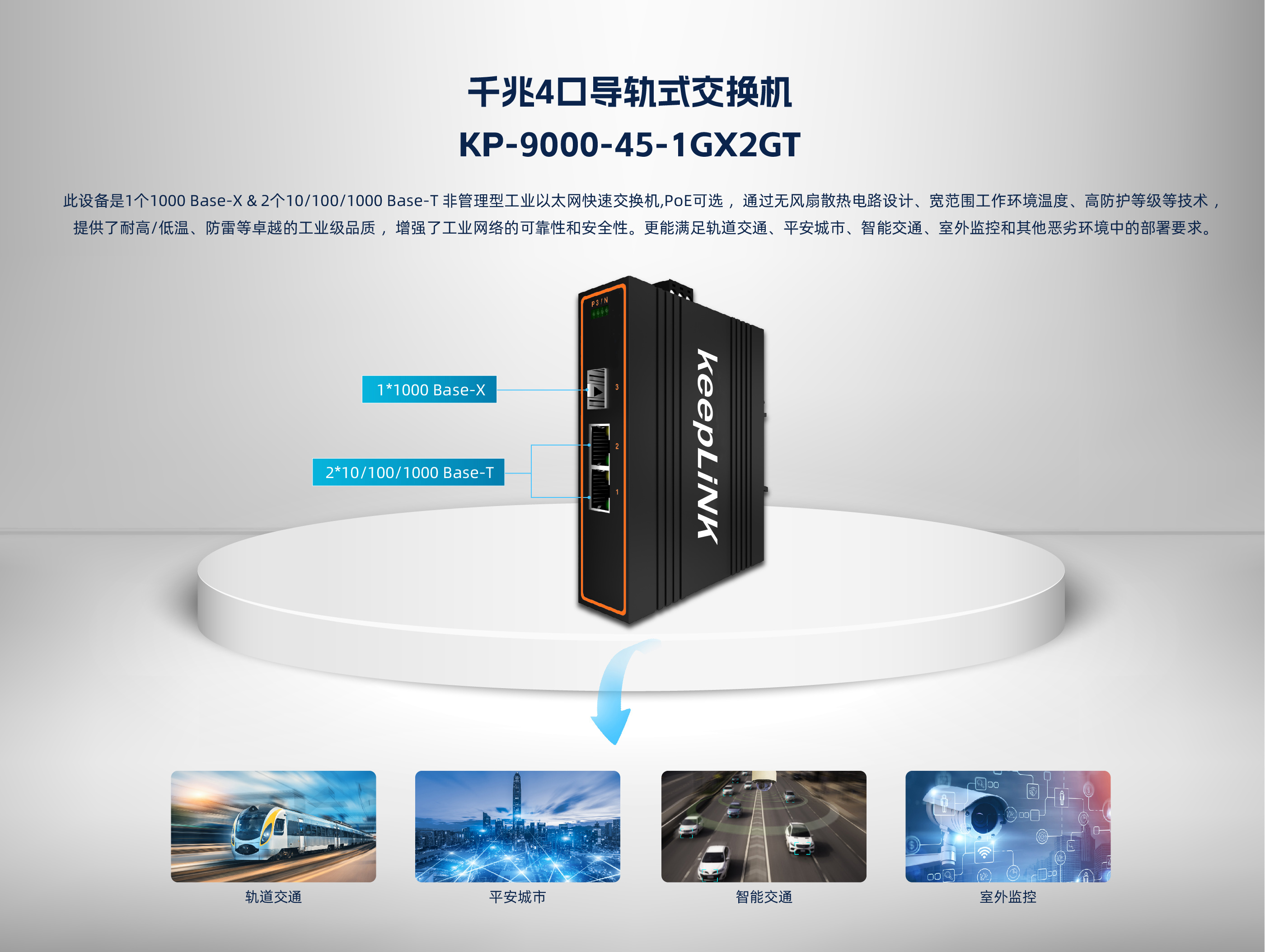 KP-9000-45-1GX2GT | 1个千兆SFP光接口,(光口可选SC,ST,FC),2个10/100/1000M自适应电口 |
