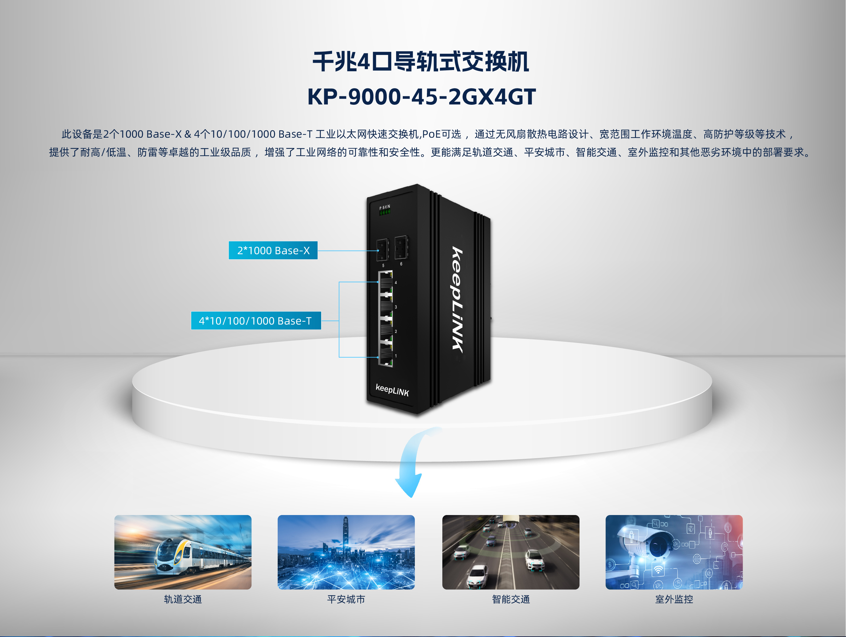 KP-9000-45-2GX4GT | 2个千兆SFP光接口,(光口可选SC,ST,FC) 4个10/100/1000M自适应电口(PoE可选配) |