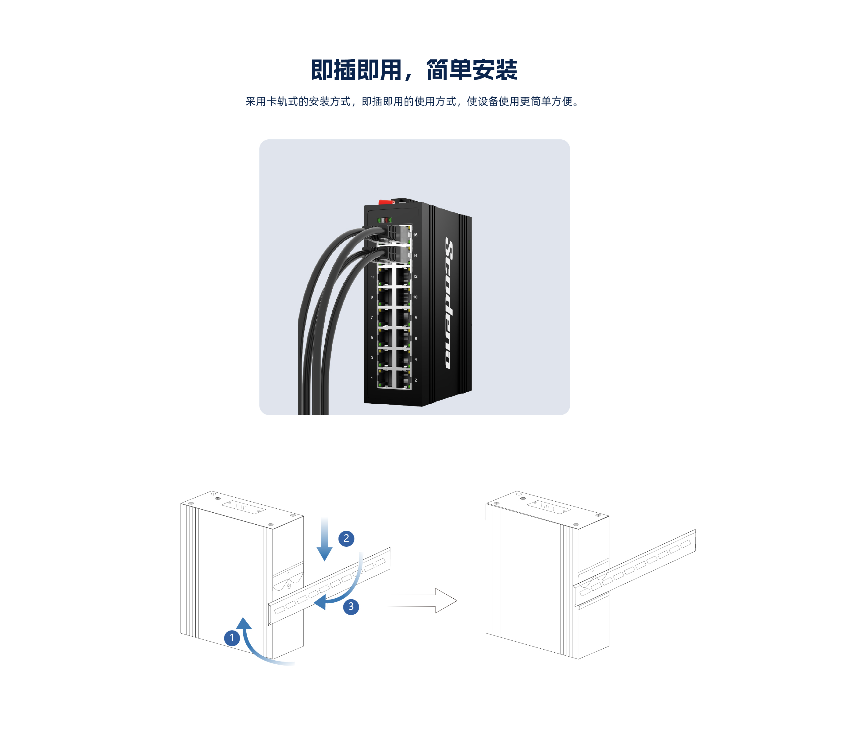 此设备是16个10/100/1000 Base-T非管理型工业以太网快速交换机 ,通过无风 扇散热电路设计、宽范围工作环境温度、高防护等级等技术 ,提供了耐高/低温、防雷 等卓越的工业级品质;增强了工业网络的可靠性和安全性。更能满足轨道交通、平安 城市、智能交通、室外监控和其他恶劣环境中的部署要求。