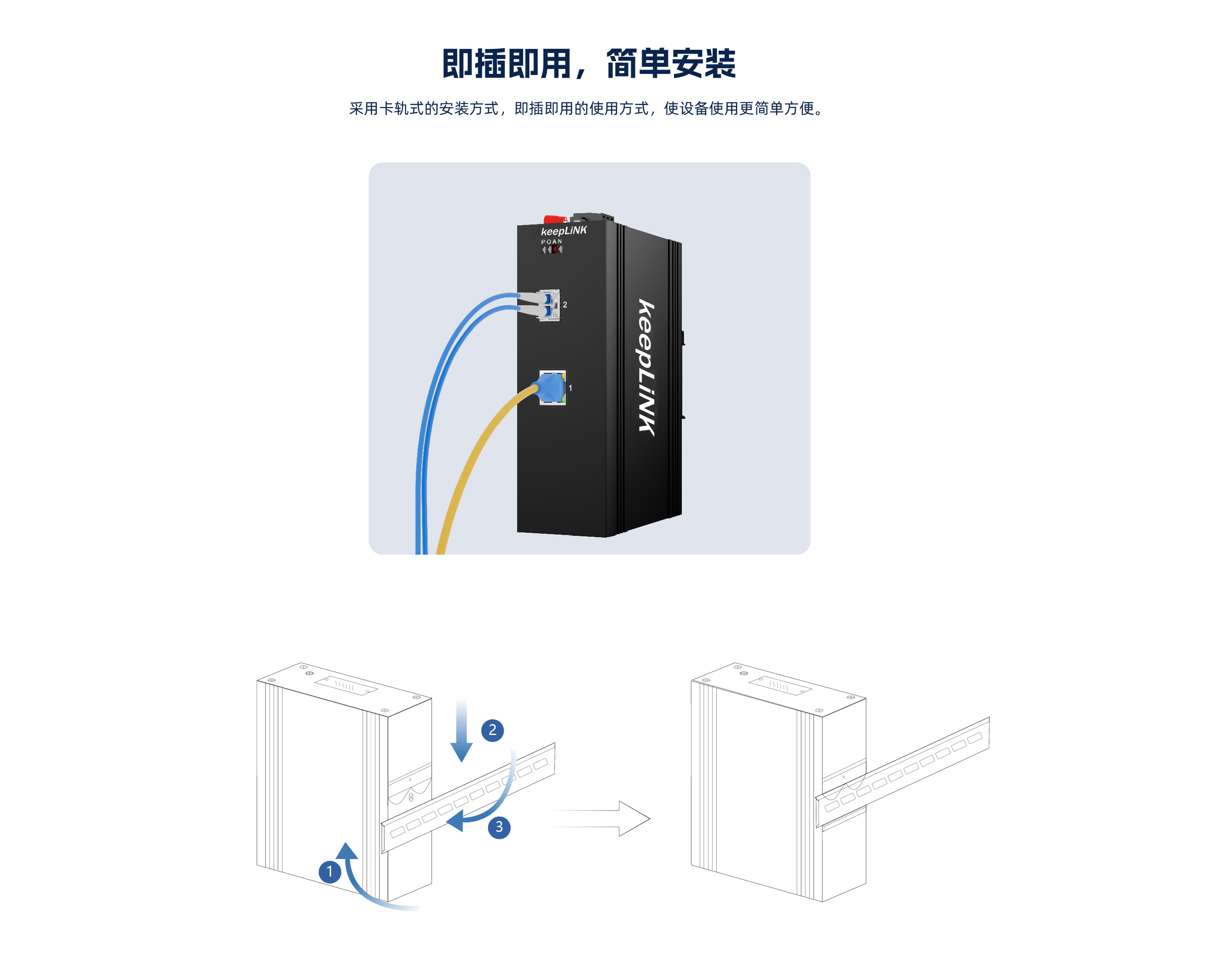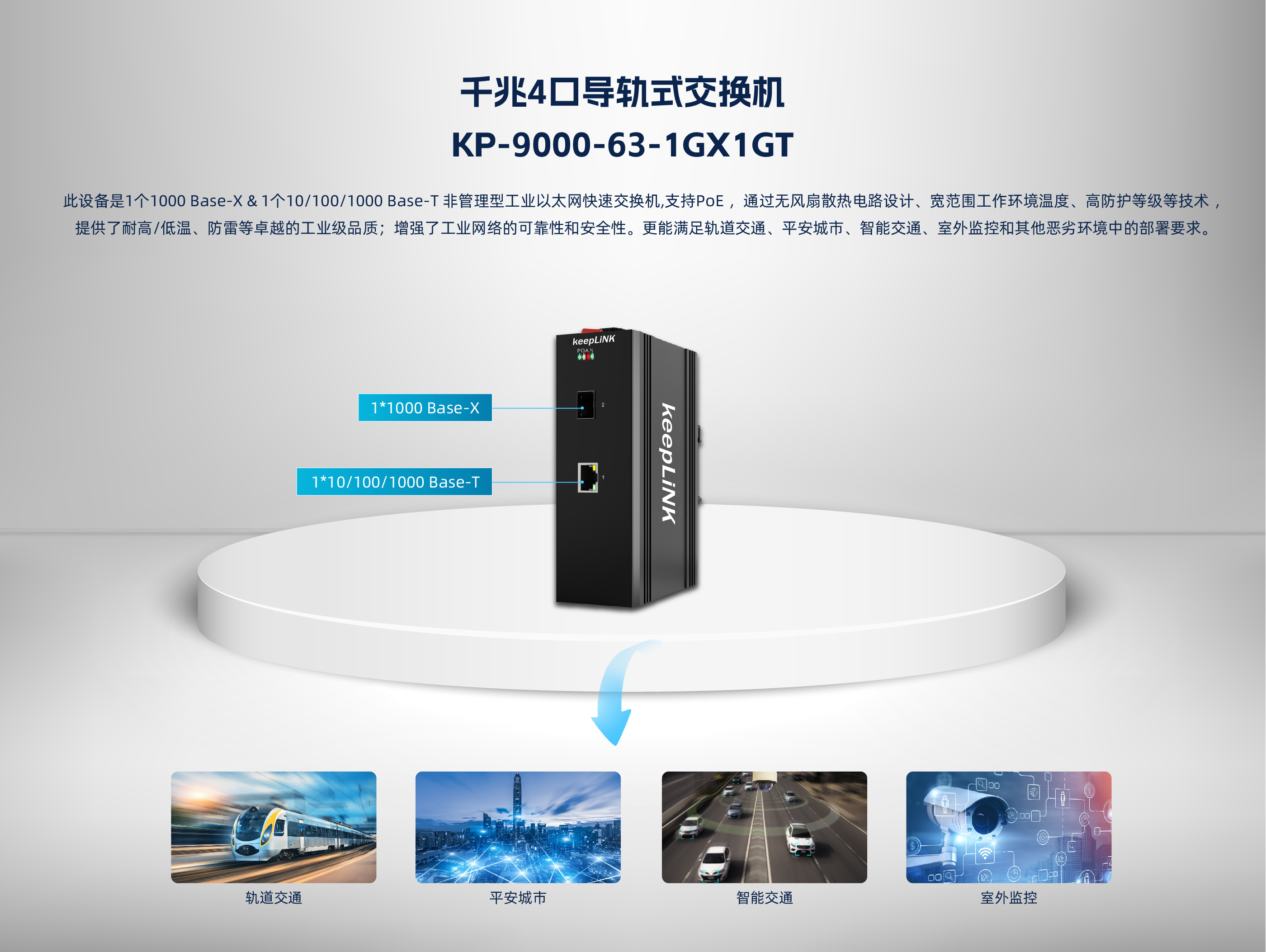 此设备是1个千兆光 & 1个10/100/1000 Base-TX非管理型工业以太网快速交 换机,支持PoE ,通过无风扇散热电路设计、宽范围工作环境温度、高防护等级等技术 ,提供了耐高/低温、防雷等卓越的工业级品质;增强了工业网络的可靠性和安全 性。更能满足轨道交通、平安城市、智能交通、室外监控和其他恶劣环境中的部署要求。