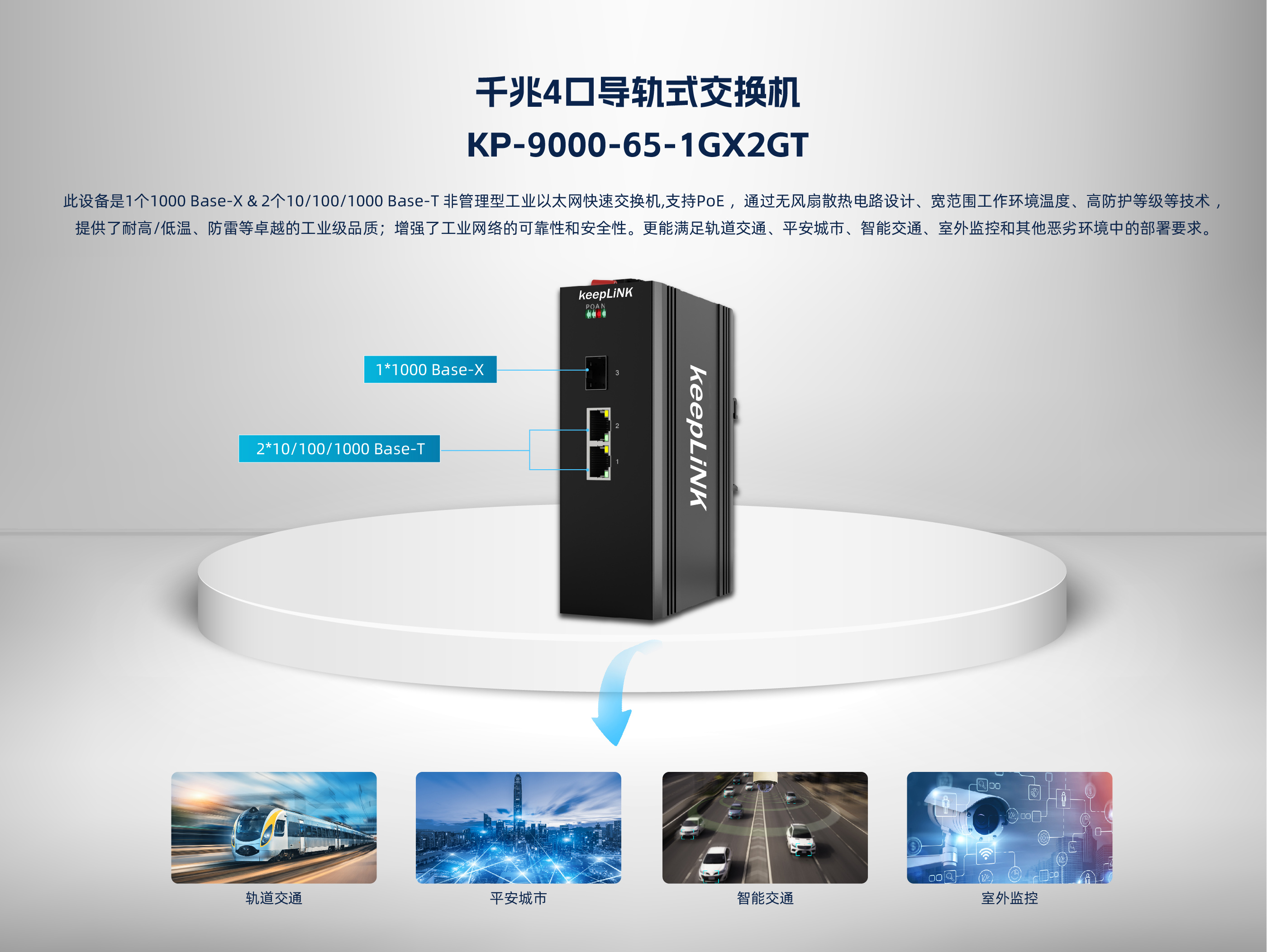 KP-9000-65-1GX2GT | 1个1000M光口(可选SC、FC、ST、SFP), 2个10/100/1000M自适应电口 |