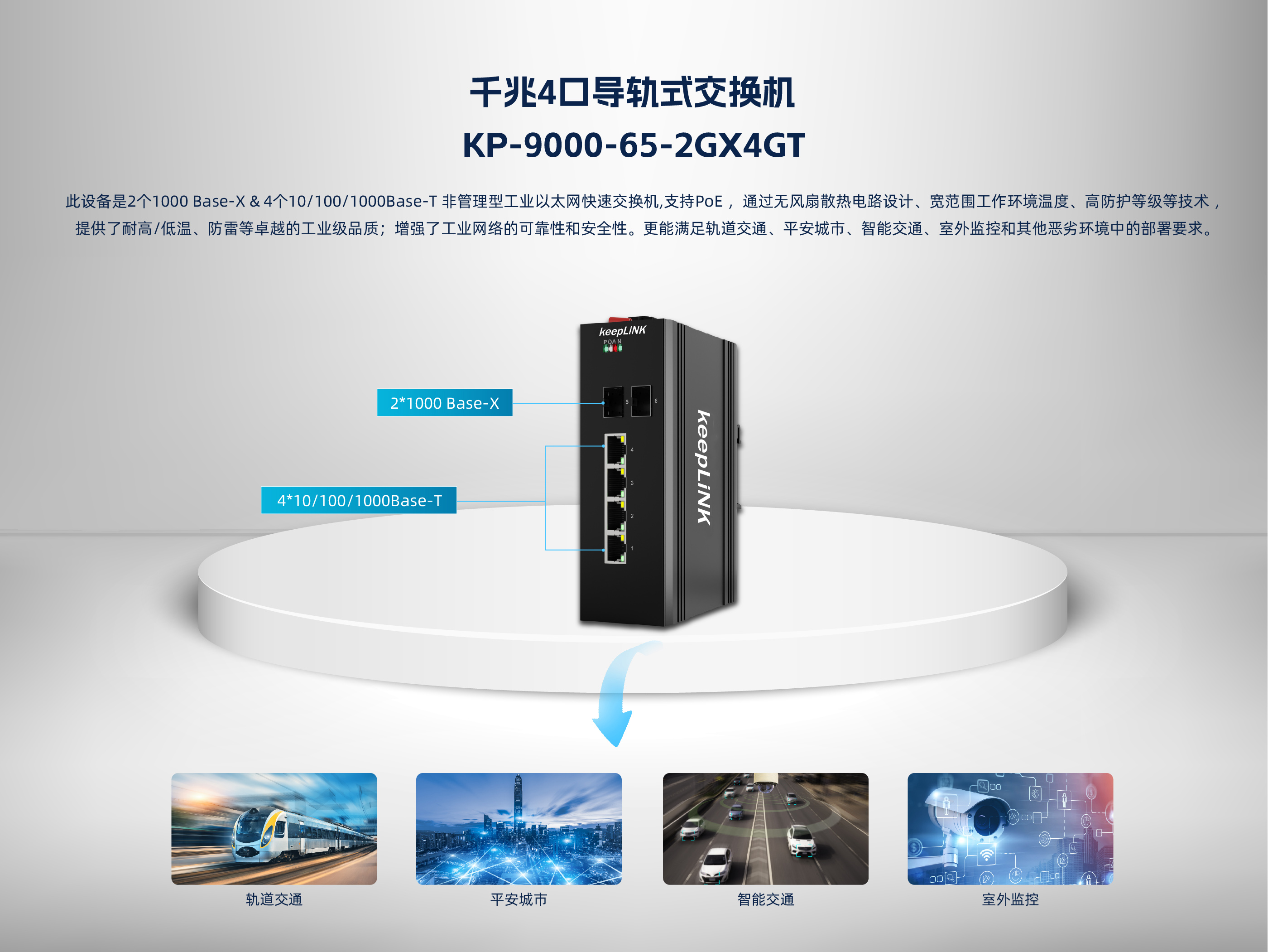 KP-9000-65-2GX4GP | 2个千兆SFP光接口(光口可选SC,ST,FC), 4个10/100/1000M自适应电口,支持PoE&PoE+ |