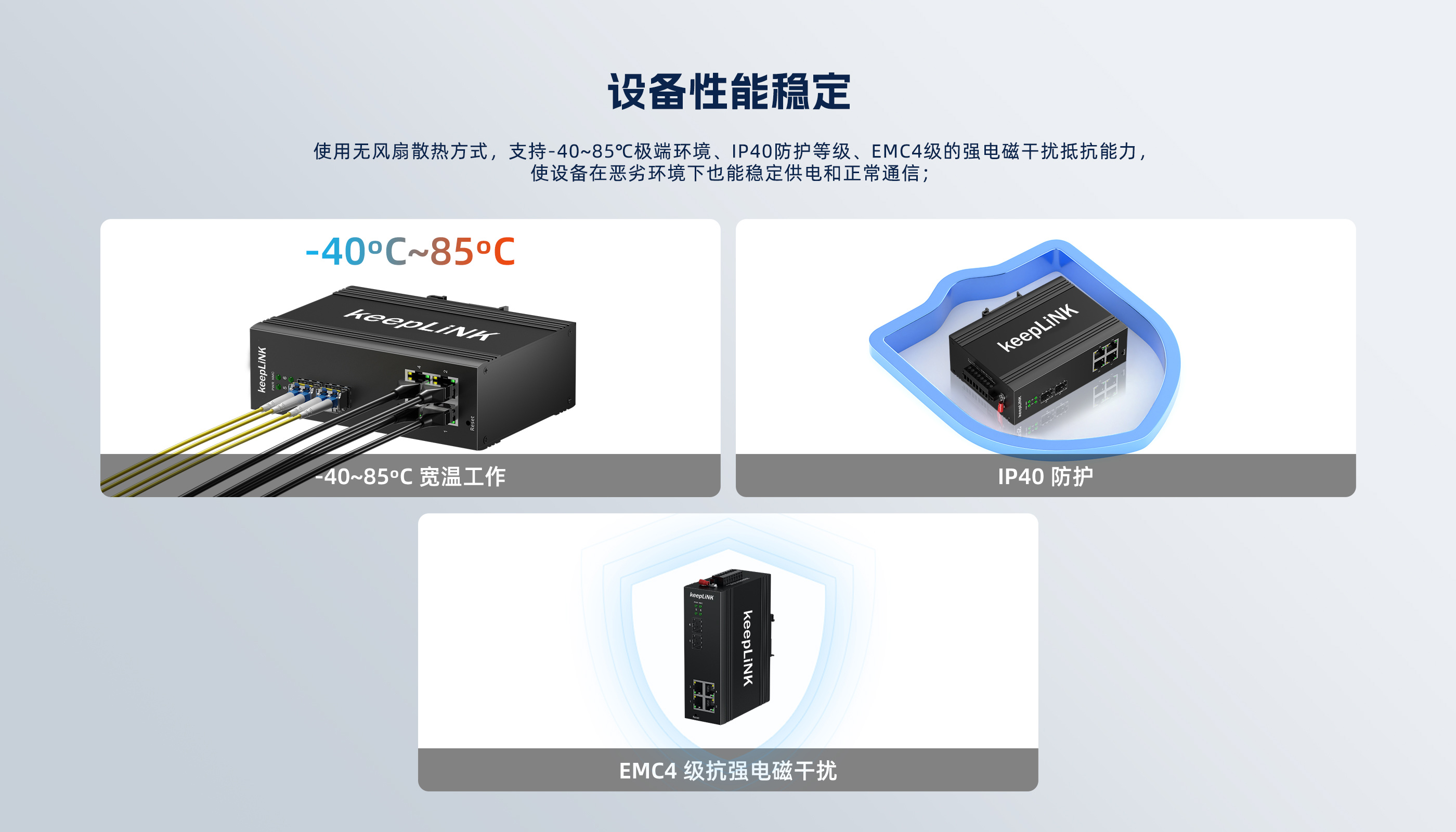 l-40℃~+85℃工作温度,IP40防护等级、宽温与高防护应对恶劣环境
