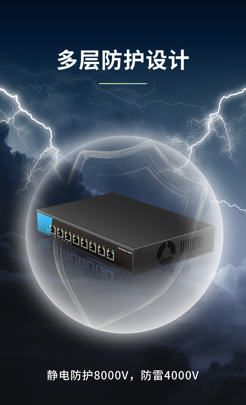 KP-8XT-AC系列非管理型交换机 ,具有8个1000/2500/5000/10000Mbps自 适应 RJ45 端口。每个 RJ45 端口均支持自动翻转和线速转发功能。采用存储转发方式 ,提供稳定可靠的数据传输。