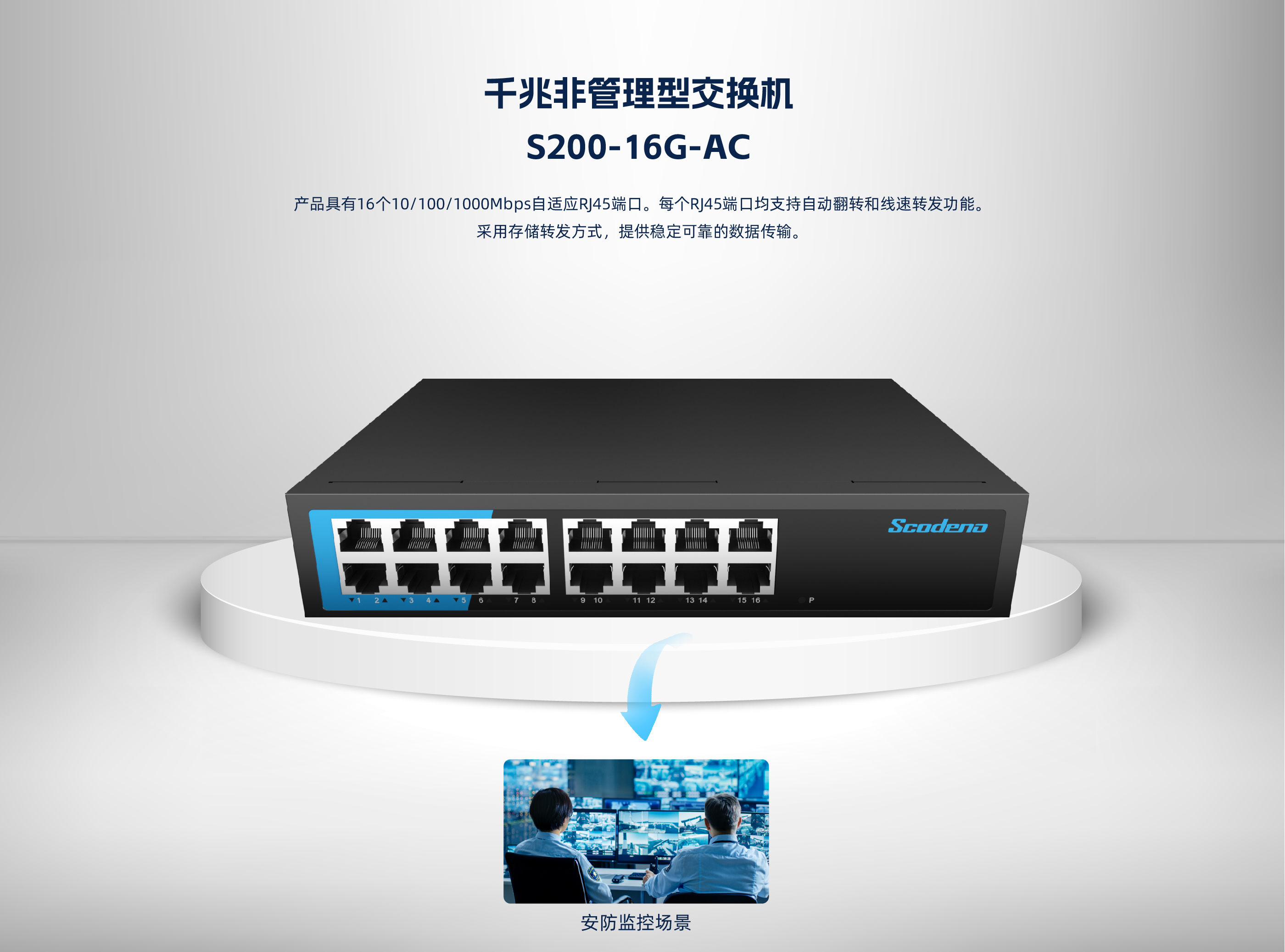 KP-16G-AC系列非管理型交换机 ,具有16个10/100/1000Mbps自适应 RJ45 端口。每个 RJ45 端口均支持自动翻转和线速转发功能。采用存储转发方式 ,提供稳定可靠的数据传输。