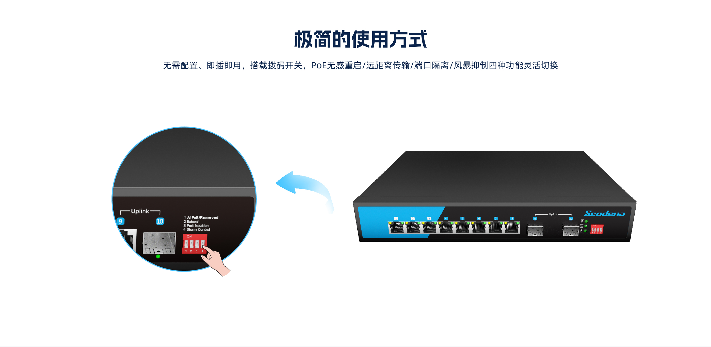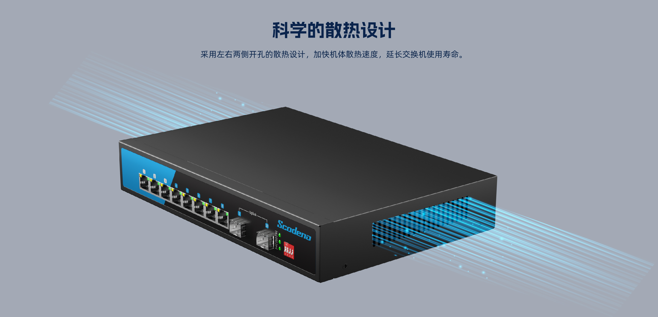 KP-10GP-S2-AC系列非管理型PoE交换机 ,具有8个10/100/1000Mbps自 适应 RJ45 端口 ,和2个千兆光口。每个 RJ45 端口均支持自动翻转和线速转发。采 用存储转发方式 ,提供稳定可靠的数据传输。